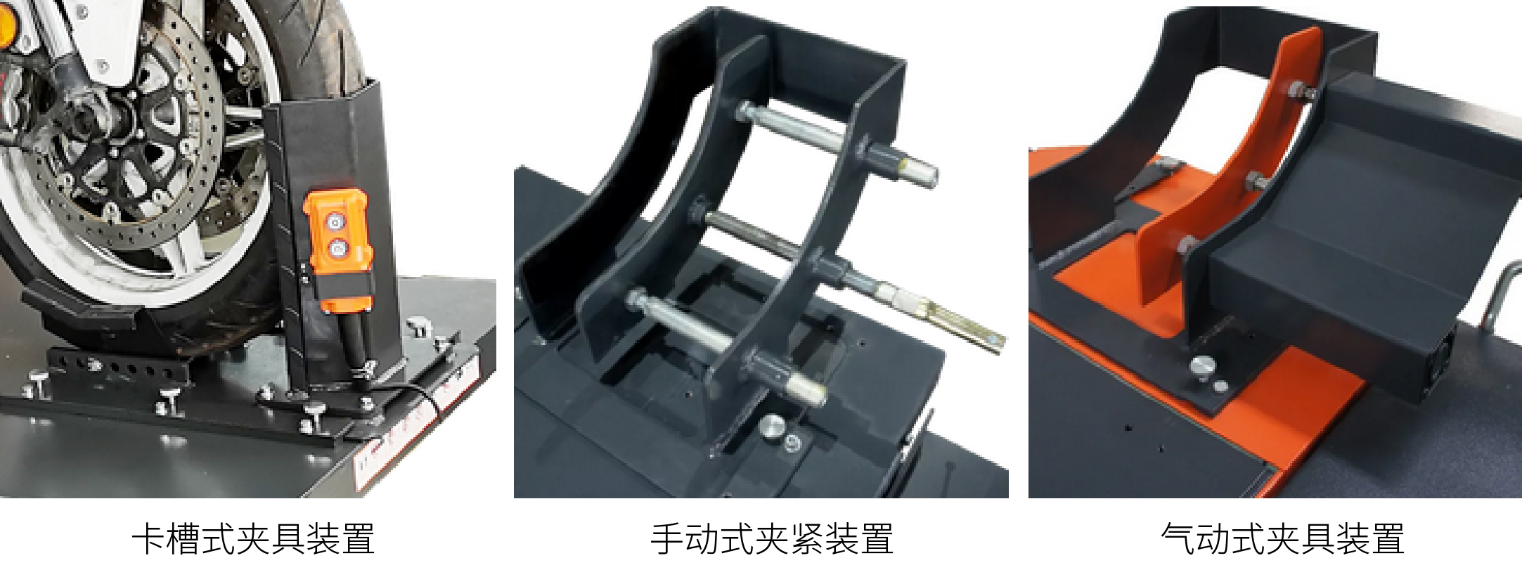 1.卡槽式夾具裝置,適用于通用型輪胎,可單人將車輛推入卡槽中固定車輪;